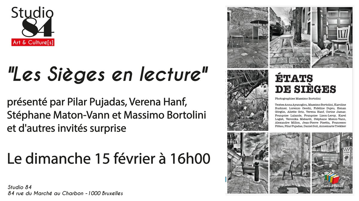 20 auteurs ont collaboré au projet "Etats de sièges" porté par le photographe Massimo Bortolini. Au coeur de l'exposition urbaines du l'artiste, ils seront présents et vous offriront des extraits en lecture autour du verre de l'amitié !