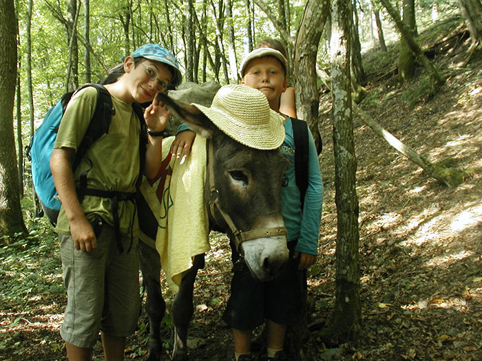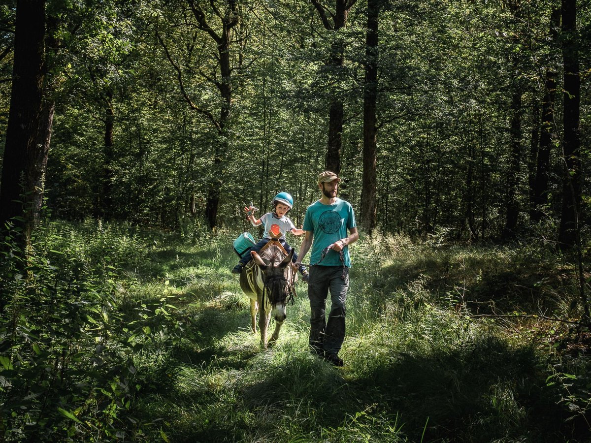 Un enfant s'installe sur le dos d'un de nos compagnons aux longues oreilles, et découvre en famille qu’on avance plus loin quand on prend le temps. .. au pas de l'âne.