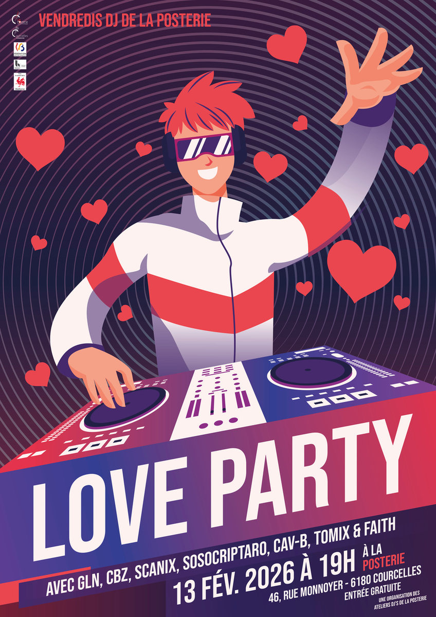 #LoveParty #AtelierDJ #JeunesTalents #LaPosterie #Courcelles #SoiréeDJ #EntréeGratuite