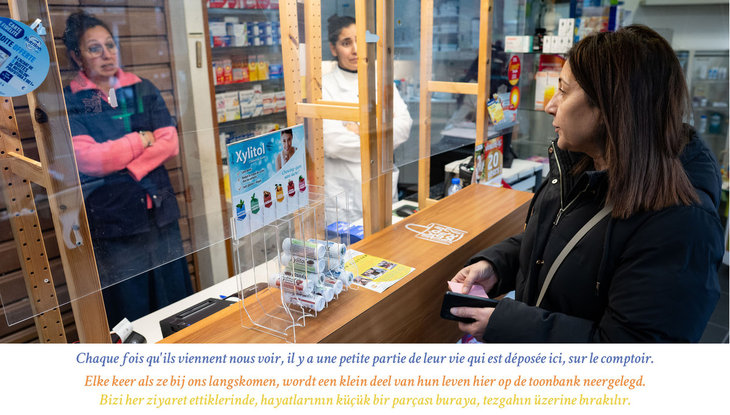 Photographies et témoignages visibles aux fenêtres des commerces de Pogge.