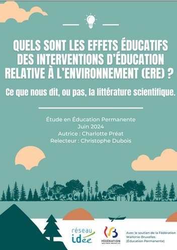 Nous espérons apporter des réponses à ces questions et à bien d’autres du même genre lors de la présentation des résultats de l’étude des effets éducatifs des interventions de l’ErE – Ce que nous dit, ou pas, la littérature scientifique (réalisée par le Réseau Idée en juin 2024). Elle sera suivie d’un temps d’échange et de questions-réponses.