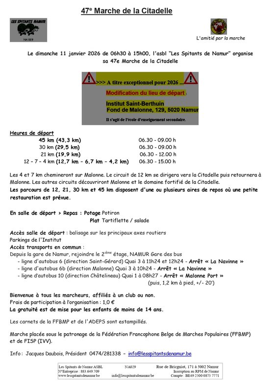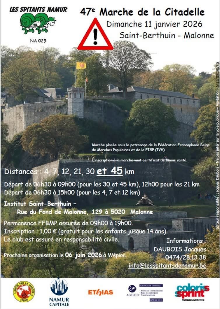 La marche est organisée sous le patronage de la Fédération Francophone Belge de Marches Populaires (FFBMP), de la F.B.S.P. et de l'I.V.V.