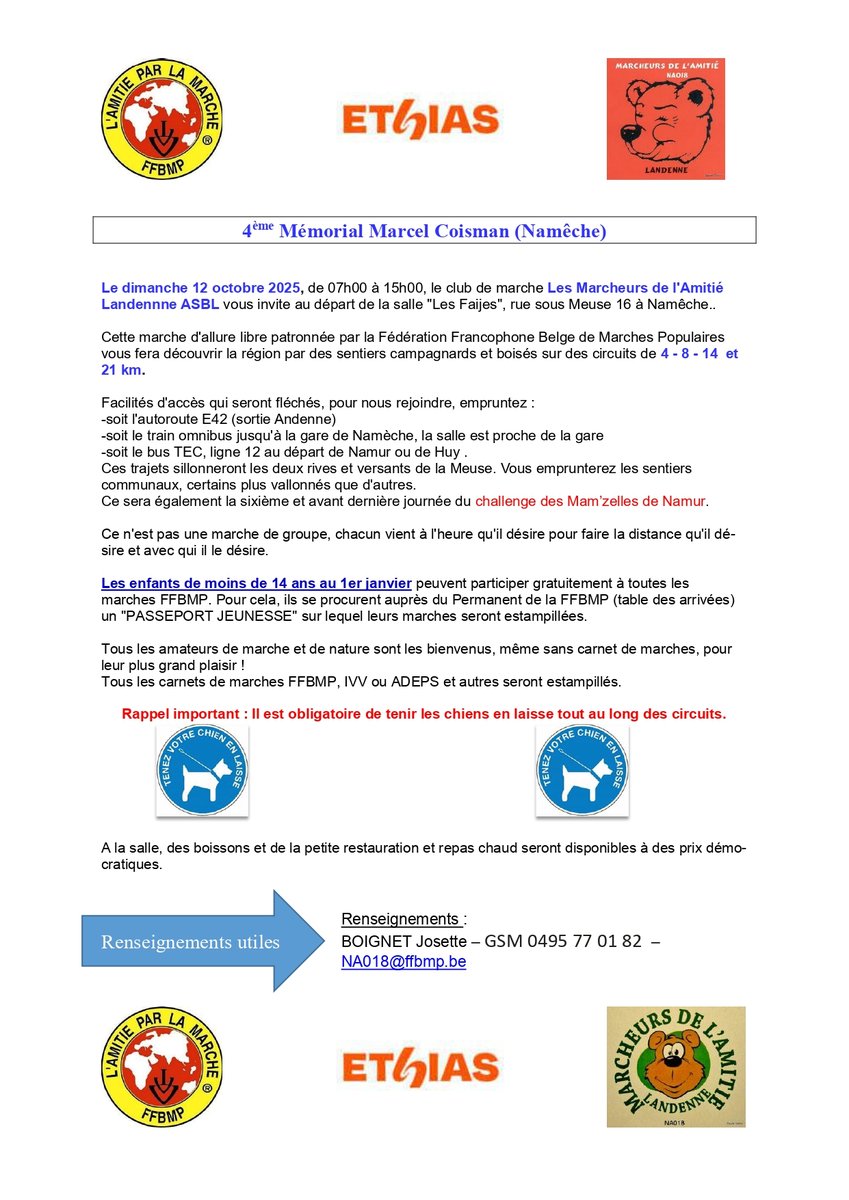 Organisation : Les Marcheurs de l'Amitié de Landenne