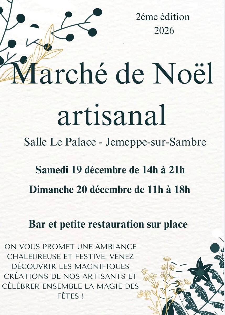 Venez nous retrouver pour la deuxième édition de notre marché de Noël les 19 et 20 décembre 2026.