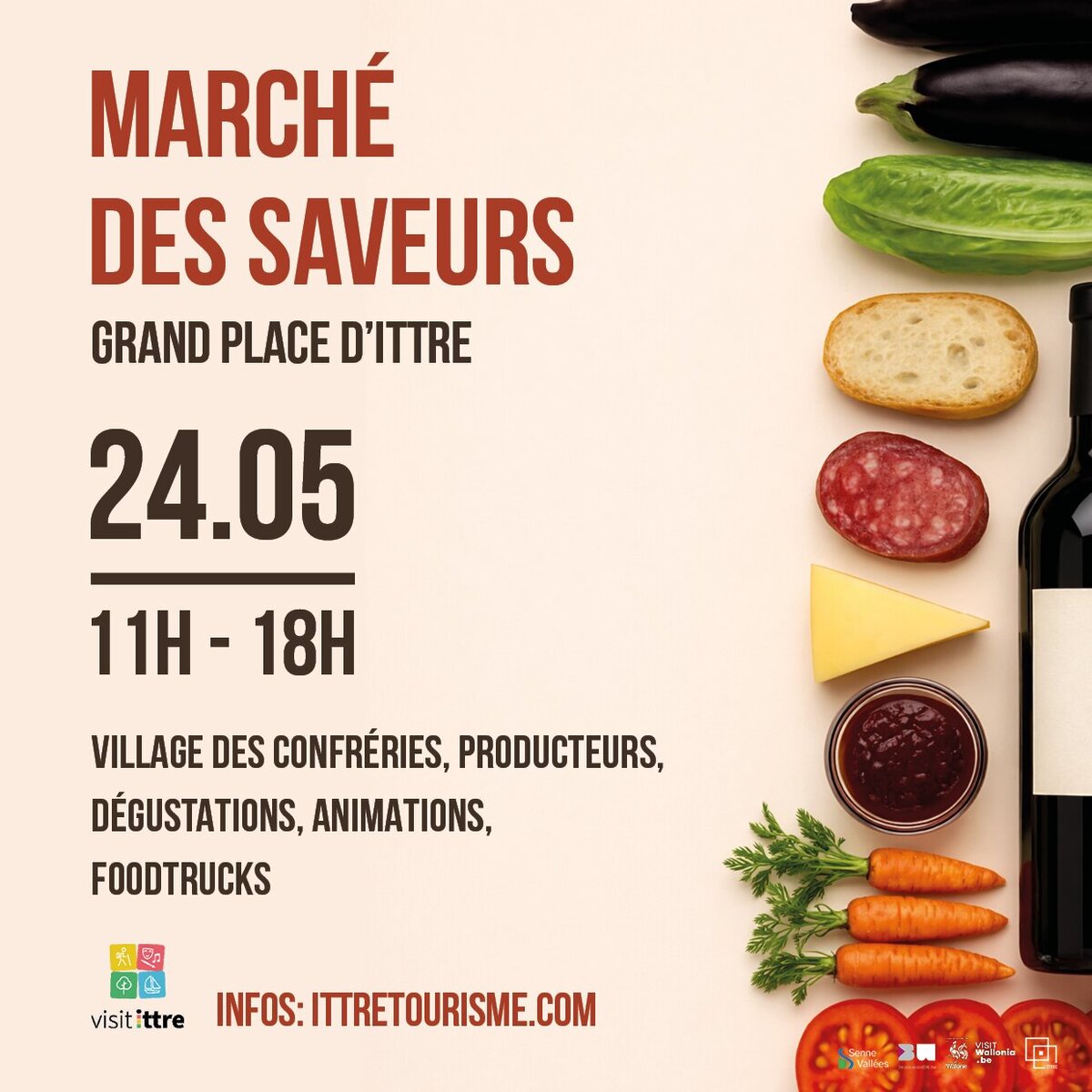 Organisé par l’Office du tourisme d’Ittre et Senne Vallées, l’événement rassemble producteurs, artisans et confréries de la région, ainsi que plusieurs foodtrucks. Les visiteurs pourront y découvrir et déguster une large sélection de produits du terroir dans une ambiance conviviale.
