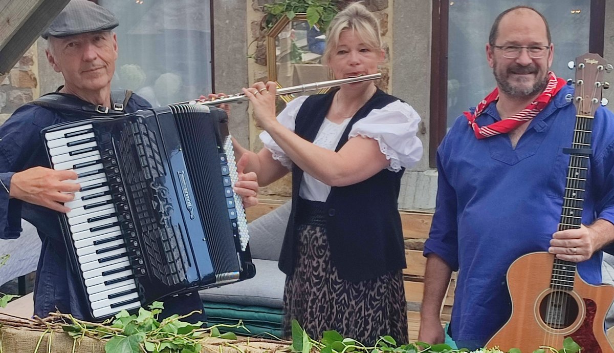 Ambiance garantie ! chants et musiques de chez nous et d’ailleurs avec Martine Médol (flûtes,) Bernard Zonderman (guitare) et Pirly Zurstrassen (accordéon).