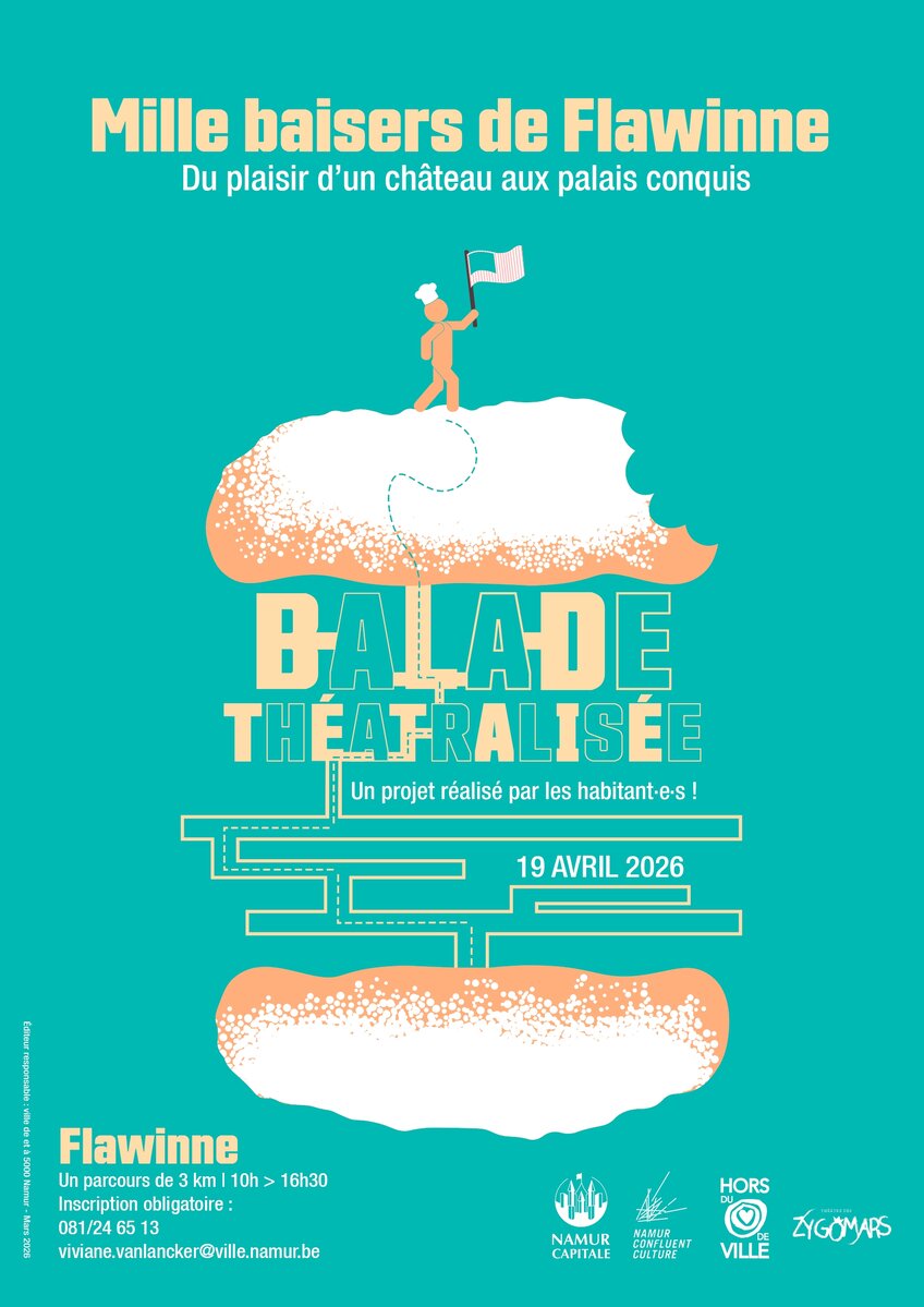 La Baiser de Flawinne, petite gourmandise locale à la réputation internationale, est au cœur d’une balade théâtralisée mitonnée par le Théâtre des Zygomars avec les habitants et habitantes ainsi que les écoles du village.