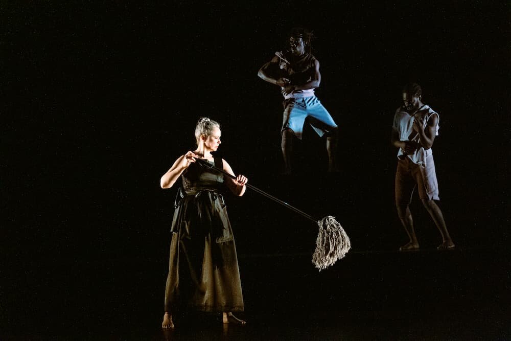 Entre icône pop et mater dolorosa, cette femme s’adresse à nous pour implorer miséricorde. À la fois concrète et mythique, révoltée et espérante, inspirée et vibrante, elle passe d’un état à l’autre, comme possédée de visions et traversée par des voix brisées. Elle prend sur elle les douleurs et larmes du monde afin de les transfigurer. Autour d’elle, gravite un choeur de six danseur.euses, empli d’énergie, incarnant les forces vitales obsédantes et sans cesse renouvelées.