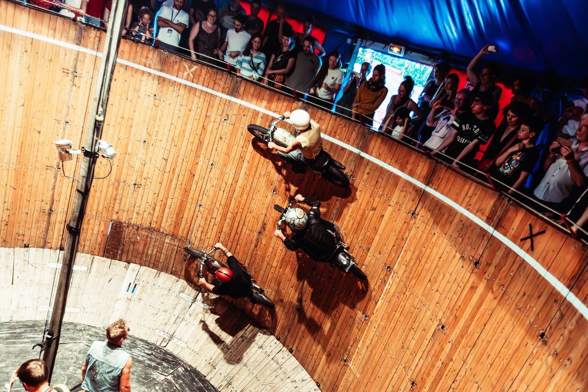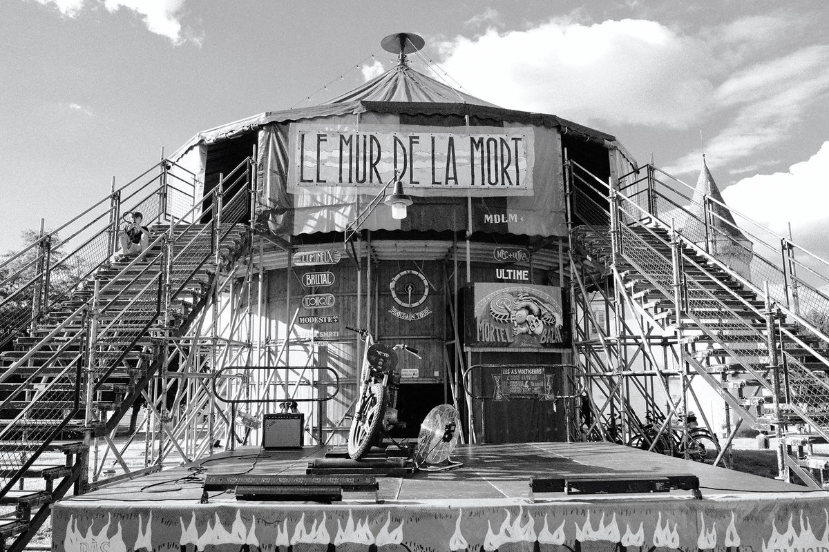 Appelez-le comme vous voulez : tonneau, puits de l’enfer, tourbillon mortel, cylindre infernal, cuve diabolique, silodrome, motodrome… L’important, c’est qu’il donne la frousse ! Inventé au début du 20e siècle, le « Mur de la Mort » permet à des motard·es bien allumé·es de rouler à tombeau ouvert et à la verticale. Avec Mortel Jus de Mortel, la folle équipée vous propose un mélange de rock live et de deux-roues pétaradants, à admirer d’en haut, « comme à l’époque ». Le tout livré avec humour et amour du risque. Chair de poule garantie !