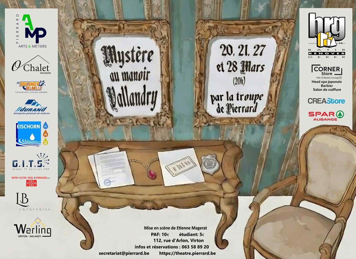 📍 La troupe des professeurs de Pierrard (cette année: Annette Rozet, Pierre, Haverlant, Vincent Cornerotte, Ludo Baetslé, Cynthia Renault, Nathalie Michel, Camille Thiry, Fabienne Toussaint, Silvia Brasseur, Carole Goffinet, sous la houlette d'Etienne Magerat) vous donne rendez-vous les 20, 21, 27 et 28 mars 2026, à 20h00.