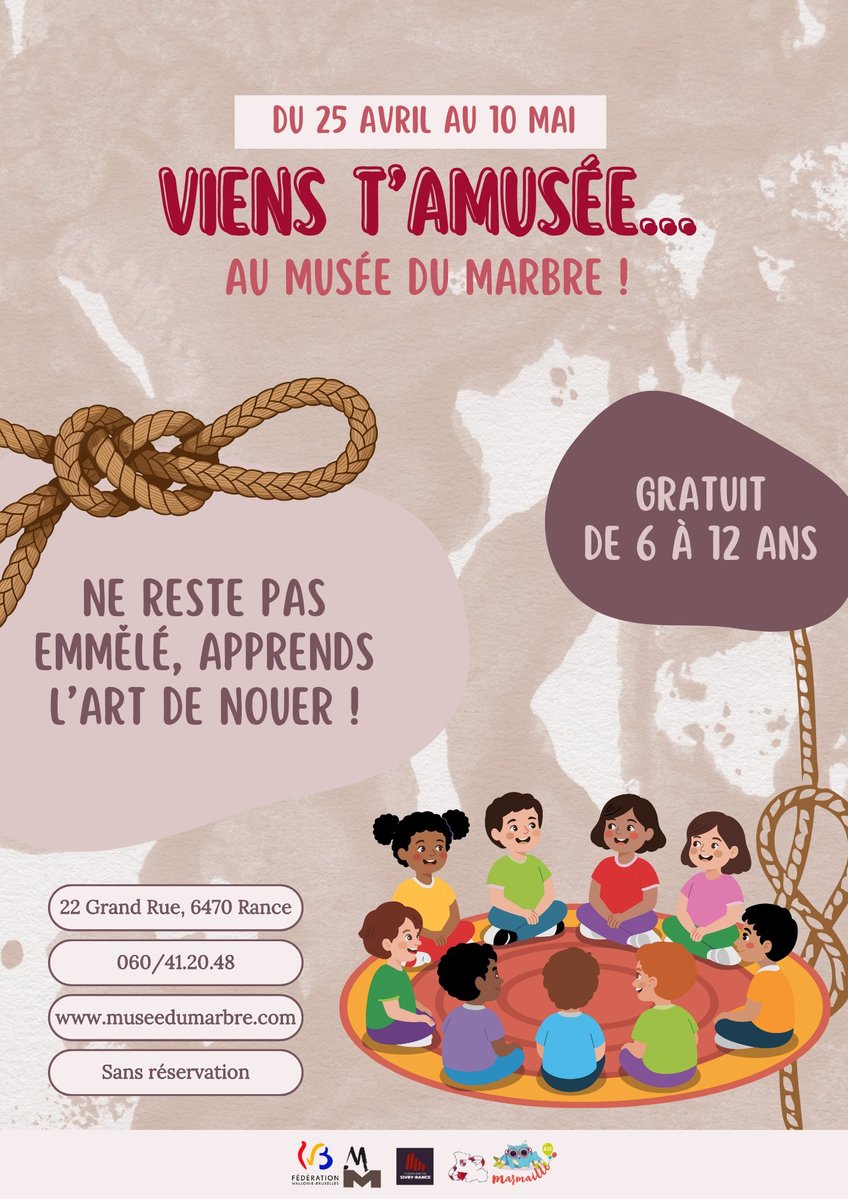 Pendant les vacances de printemps, les enfants de 6 à 12 ans sont invités à venir s’amuser au Musée du Marbre avec une activité manuelle et ludique autour des nœuds, du 25 avril au 10 mai.
