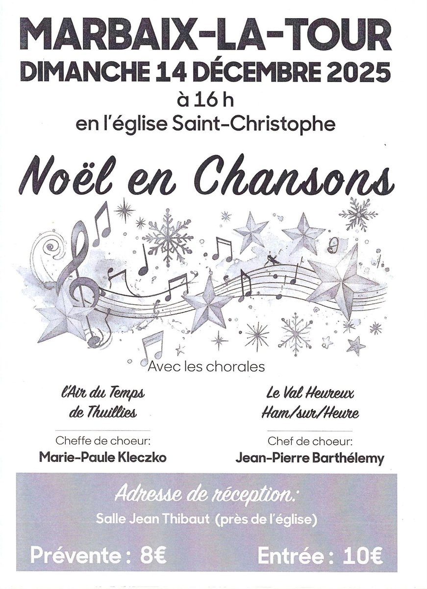 3ème concert de Noël avec les chorales : L'Air du Temps de Thuillies et Le Val Heureux d'Ham-sur-Heure. Ces deux chorales uniront leurs voix afin de vous proposer des chants porteurs d'émotion, d'amitié et d'amour.