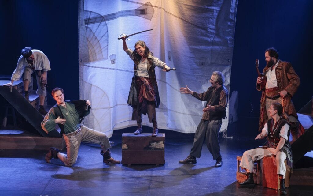 Sur scène, six comédien·ne·s nous plongent dans cet incroyable imaginaire, où se mêlent courage, quête de liberté, chants, combats et une pointe d’humour. Alors, prêt·e·s à monter à bord ? À hisser les voiles et à dégainer votre sabre ? À l’abordaaage !