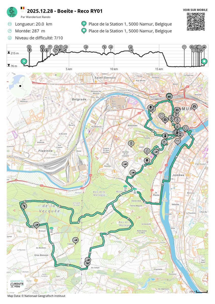 Namur, capitale de la Wallonie, connue pour son symbole (non officiel) : le Lumçon, ou escargot en Wallon. Signe de leur lenteur ? Hé bien, que nenni ! Namur est dynamique, pleine d’atouts de charme avec son patrimoine historique et culturel riche, mais surtout, ses paysages variés. Nous irons sillonner autour de la confluence de la Sambre et de la Meuse afin de montrer que Namur a des trésors cachés aussi dans ses alentours. Un peu de sport, c’est sûr, mais surtout, du réconfort pour les yeux et… les papilles : fêtes de fin d’année obligent, nous terminerons la randonnée par le marché de Noël pour se réchauffer !