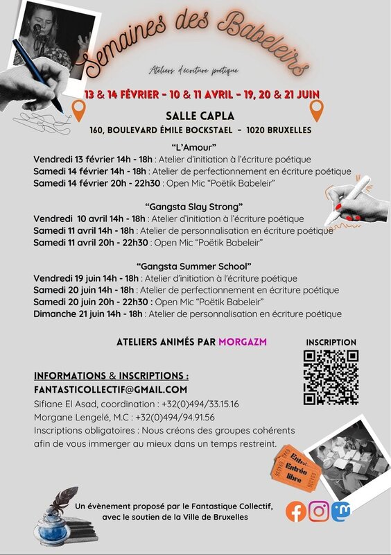 | Laboratoires d’écriture créative du jeudi (Du 8 janvier au 16 avril - Schaerbeek) |