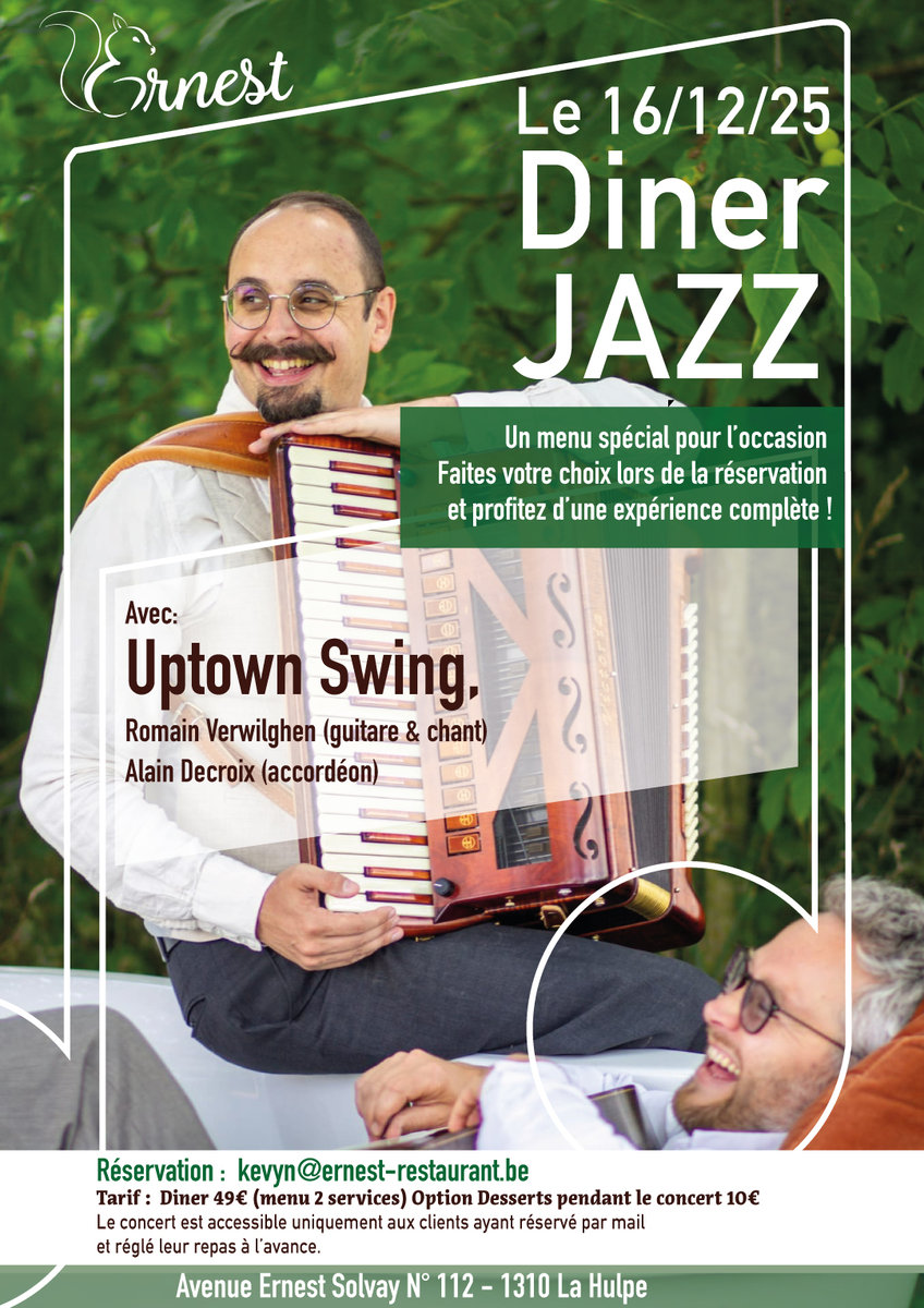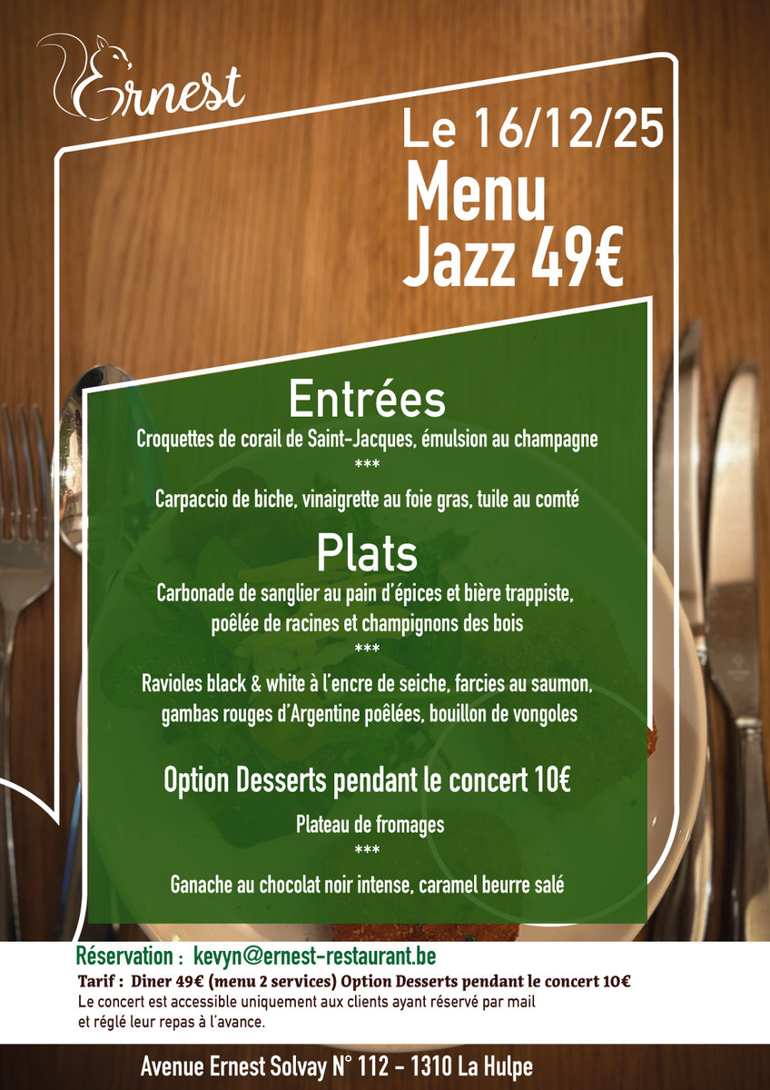 Le mardi 16 décembre, Ernest se met sur son 31 pour une soirée pleine de swing, de saveurs et d’ambiance cosy.