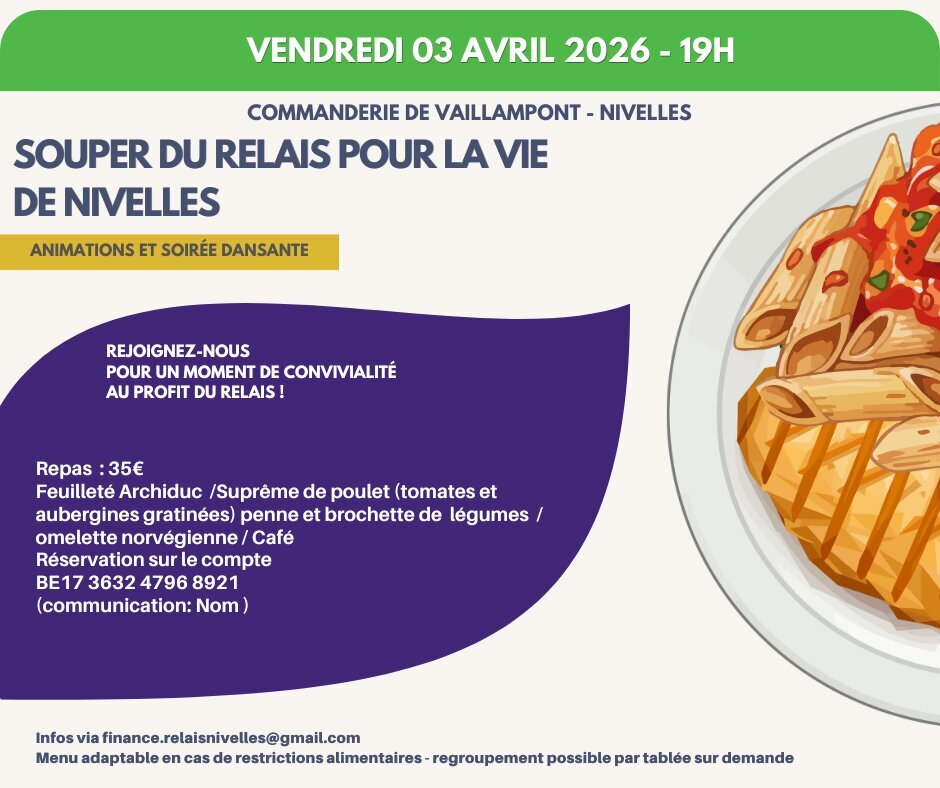 Le Souper du Relais pour la Vie de Nivelles est de retour !