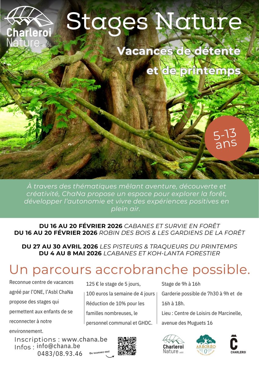 Reconnue centre de vacances agréé par l’ONE, l’ASBL ChaNa propose des stages qui permettent aux enfants de se reconnecter à notre environnement naturel. Observer, écouter, toucher et sentir la nature sont au cœur des activités, complétées par des balades, des jeux forestiers, des activités manuelles, sportives et de détente.
