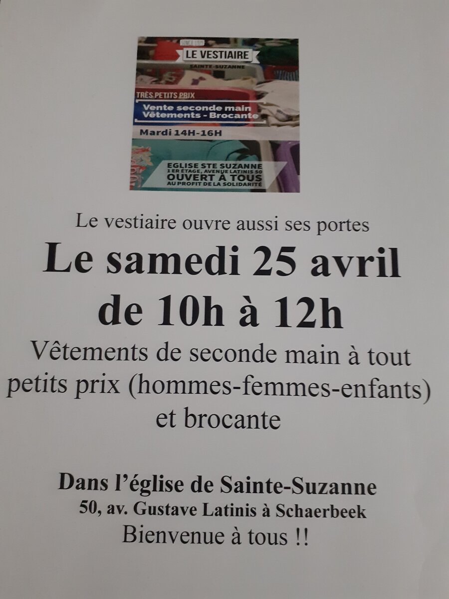 Bienvenue à tous ce samedi 25 avril de 10h à 12h, av Latinis, dans l église ste Suzanne à