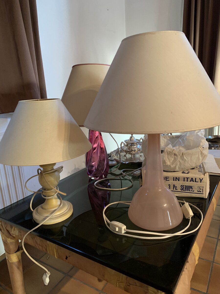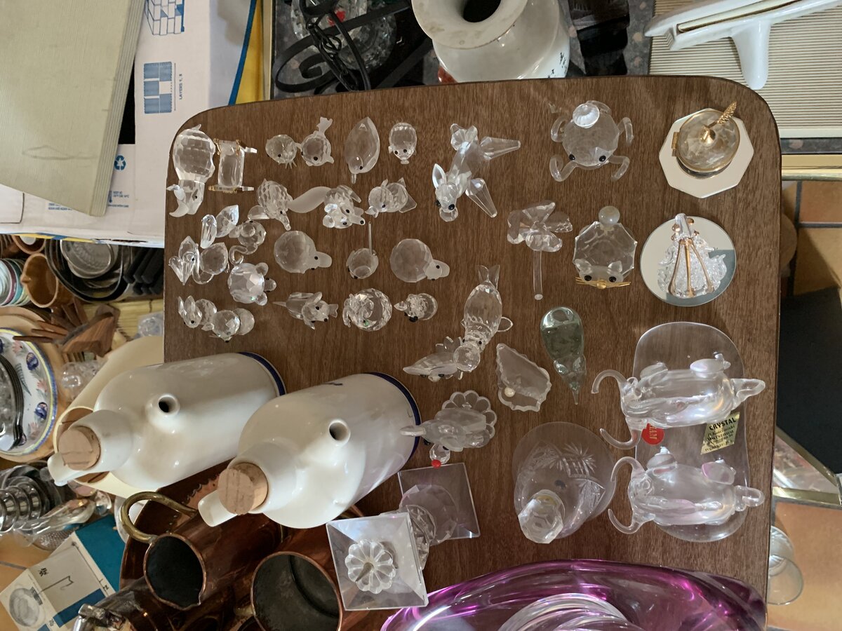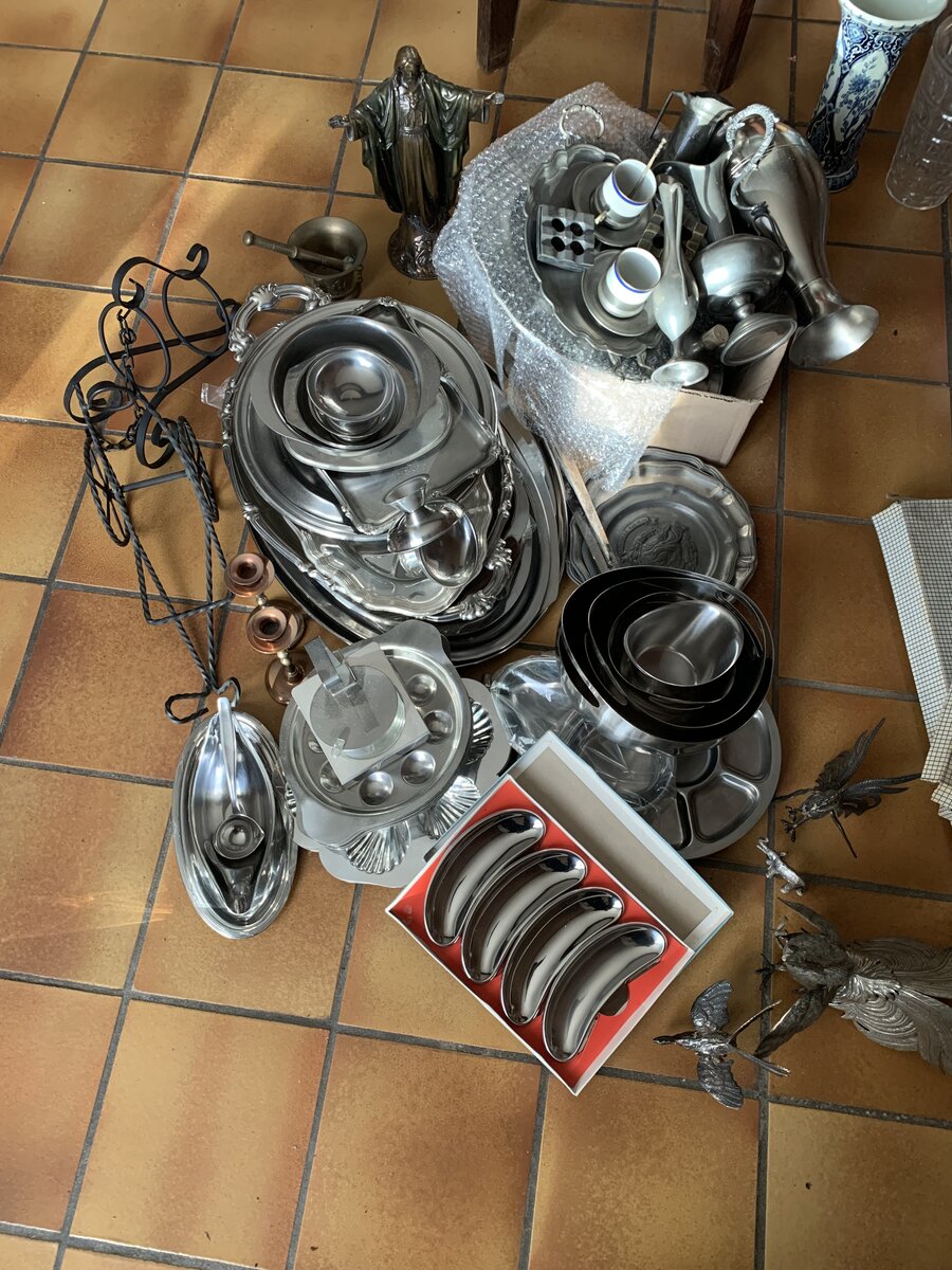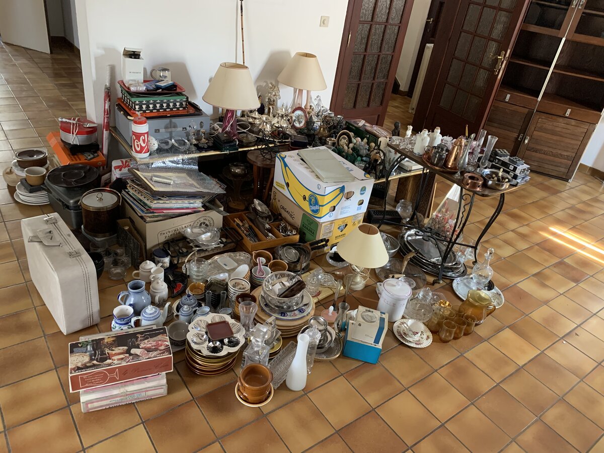 Vide-maison suivant décès. Déco, verres, Crystal, Val-Saint-Lambert, lampes, plats de service… Disques 33T et 45T… Meubles de jardin Allibert. Table de salon.