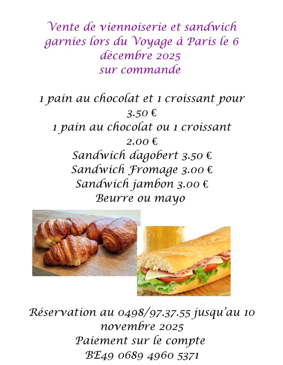 Possibilite de reserve petit dejeune et sandwich Garnies