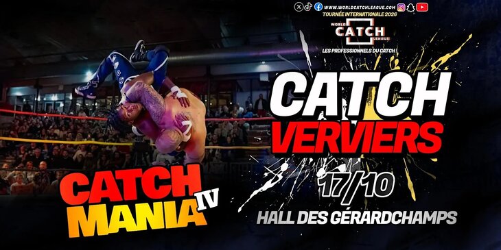 Les catcheurs professionnels de La World Catch League poseront leurs valises, pour la Deuxième année consécutive, à Verviers, le 17/10 au Hall Des GÉRARDCHAMPS pour deux heures de spectacle sportif qui feront vibrer petits et grands.
