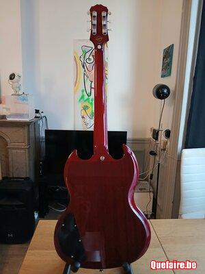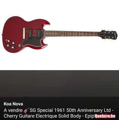 Cherry Guitare Electrique Solid Body - Epiphone - sg Special 1961 50th Anniversary Ltd. Avec une housse de la marque Epiphone, un porte guitare et une sangle.