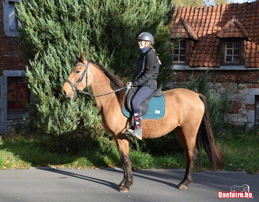 Nous l’avons débourrée en douceur et à son rythme (elle connaissait déjà presque toutes les bases au sol). C’est une super jument aussi bien en balade qu’en piste, elle peut convenir à tous types de cavaliers.