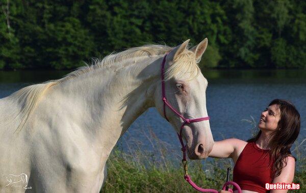 Testée ggaaEeCrCr, elle a une robe rare et particulière : smocky cream. Elle n’est pas porteuse du gêne gris et sera donc vraiment une très chouette jument pour un élevage qui désire un cheval de couleur.