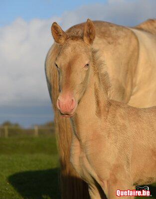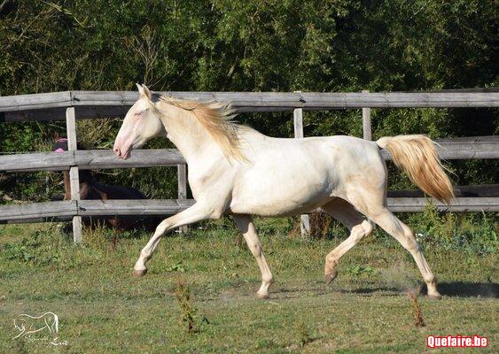 Issue du mariage de notre étalon perlino Sachero de la Luz (née chez nous) et de notre jument perlino Paquita de la Luz (née chez nous, avec un grand père également né chez nous : Taranto de la Luz).