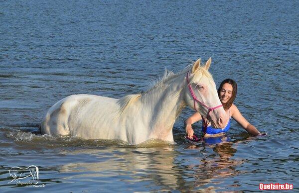 Nous avons emmené Jalexa en Juin 25 au Lac. Elle a nagé de bon cœur et avec entrain. Mon amie (très légère) est même montée sur son dos quelques secondes dans l’eau et elle n’a absolument pas réagit.