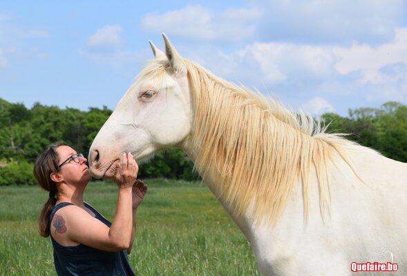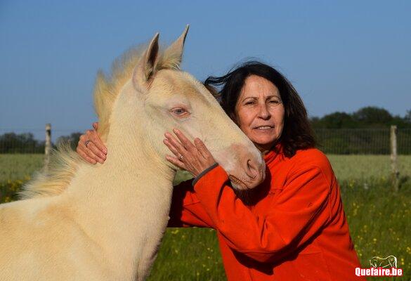 Jalexa s’est révélée très proche de l’homme dès ses premières heures de vie, cherchant le contact avec nous et demande des câlins. En grandissant, même en prairie, elle est toujours heureuse de nous voir et vient toujours à nos côtés (c’est même difficile de caresser les autres chevaux car elle vient toujours demander de l’attention).