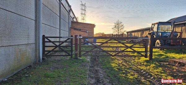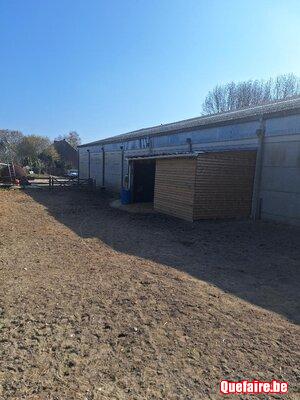 Nous vous proposons une piste extérieure, 1 abri extérieur pour 2, 3 boxes 3x3, 1 grand boxe pour 2. Possibilité d'achat de foin groupé, apporter la ration journalière en hiver donnée 2x par jour par nos soins, nettoyage complet des boxes 1x semaine. Eau, paille, électricité, sortie en hiver en paddocks, mise à l'herbe entre le 8 et le 15 avril. Jolie promenade à la campagne.