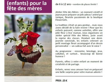 Atelier - Art floral (enfants) pour la fête des mères avec Monica Jane